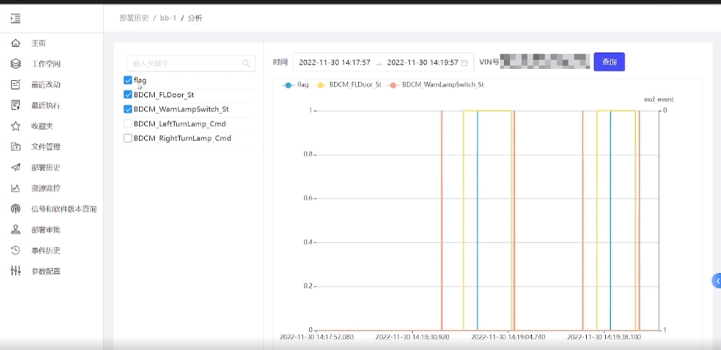 通过车云同构的架构,vStudio写成的算法能够实时下发到车端并秒级运行,算法在车端触发数据采集时,高精数据回传至vStudio,业务人员可以通过数据可视化的界面,实时查看信号数据图像。