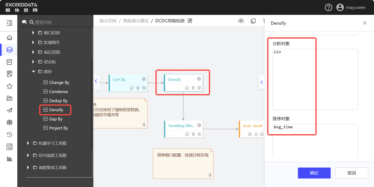 填充,选择densify算子,将数据按照vin进行分组,按照msg_time进行顺序填充。