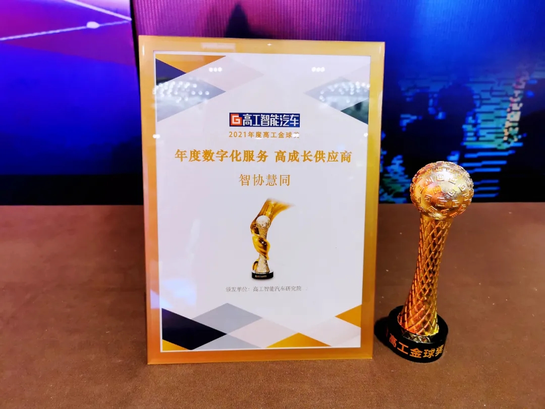 在刚刚结束的2021年度(第五届) 高工智能汽车年会上,智协慧同被授予了“年度数字化服务 高成长供应商金球奖”。